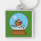 Snow Globe with Cute Sparrow Playing Soccer Key Ring