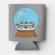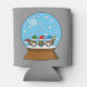 An illustration of a cute snow globe with three owl gnomes wearing a colourful santa hat in a snowy landscape with a pine tree. One of the owl gnomes is holding an axe. This cartoon snowdome or waterglobe Christmas design is a gift idea for birds lovers, xmas and winter holiday lovers.
