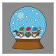 An illustration of a cute snow globe with three owl gnomes wearing a colourful santa hat in a snowy landscape with a pine tree. One of the owl gnomes is holding an axe. This cartoon snowdome or waterglobe Christmas design is a gift idea for birds lovers, xmas and winter holiday lovers.