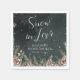 Elevate your winter celebration with these Snow in Love paper napkins. Designed with hand-painted pine greenery, snowflakes, and pinecones over a moody black watercolor backdrop, they bring a refined yet cozy touch to your table setting. Perfect for bridal showers, weddings, or winter gatherings, each napkin adds elegance and coordination when paired with matching invitations, plates, and signage from the collection.