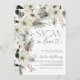 This “Snow in Love” bridal shower invitation captures the soft glow of the season with elegant watercolor poinsettias, pinecones, holly berries, and evergreen sprigs. The design is richly winter-inspired while remaining timeless and refined—perfect for brides who adore the romance of the colder months.