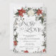 The Snow in Love Winter Bridal Shower Invitation captures the romance and beauty of a winter wonderland with a touch of festive charm. The design features a watercolor illustration of evergreen branches dusted with snow, creating a soft, enchanting backdrop for a celebration. Pops of red florals and berries are interwoven with the greenery, giving the design a seasonal, yet elegant, winter feel. The modern, unique script adds a personal and contemporary touch, with flowing letters that evoke a sense of warmth and joy amidst the snowy landscape. The contrast of deep greens and bright reds enhances the festive mood, making this invitation perfect for a winter bridal shower. The evergreens symbolise lasting love, while the snowflakes add a whimsical element, reinforcing the theme of a love story blossoming even in the heart of winter. This invitation is ideal for brides looking to celebrate their special day with a cosy, winter-inspired event, surrounded by love, snow, and natural beauty. Matching items available.