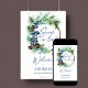 Snow in love winter bridal shower editable template welcome sign poster instant digital download, watercolor snowy pine wreath with pine cones and blue winter berries welcome sign personalised bridal shower winter themed entrance decor.