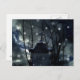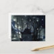 A sweet cemetery scene with a tombstone in the snow and printed on a post card.