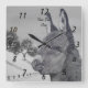 snow landscape lifelike pencil drawing of donkey square wall clock