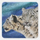 Graphic watercolor painting of snow leopards in their habitat. The snow leopard is a large cat native to the rocky mountain ranges of Asia. These animals are endangered and their mountain habitats are threatened.