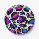 Bright coloured snow leopard print paper plates. Great for themed birthday parties!