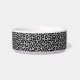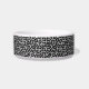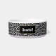 Stylish kitty food dish done with graphics of a black and white snow leopard fur print, around the dish, and a gold tone edged black text area, in the middle, for your pet's name. White text allows you to customise with your pet's name, for a personalised bowl your feline friend can be proud of. Makes the purrfect gift idea.