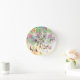 Snow leopard tropical floral Hawaiian pastel Round Clock