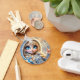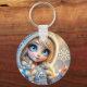 Charming snow princess adorned in intricate blue attire against a magical, snowy backdrop.