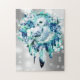 Snow Owl Dreamcatcher Green and Teal Blue Floral Jigsaw Puzzle