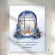 Celebrate classic winter warmth with this traditional poster variant. Soft white snowflakes drift across a textured snowy backdrop, while a hand-drawn frosted window frame reveals a cosy pine forest beyond. The phrase appears in flowing, brush-style script at the top, lending an old-world charm: “Through every frosted pane lies a world of endless possibilities.”