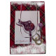 snow , plaid and equestrian theme, features saddle (English) thistle and horse shoes