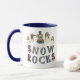 Five snowman buddies, one of them a snow angel and cool country style text that reads "Snow Rocks" is featured on snowman holiday T-shirts, mugs, mousepads, greeting cards, and much more!