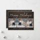 Snow & Rustic Wood Minimalist 3 Photo Holiday Card