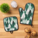 Snow Scene Festive Green Winter Trees Christmas Oven Mitt & Pot Holder Set