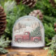 This snowglobe features an ornate embossed design of a red truck, snow scene, deer, and a forest in the background. This red truck snow globe with its unique artwork would be appreciated by anyone who likes "country style Christmas" home decor. The artwork was created using AI tools by Susang6.