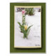 Two Spring blooming pink and yellow tulips sprinkled by a day of snow showers. This pastel yellow framed photograph is set over textured green background. Personalise the inside text by filling in the template field under Personalise it, remove the text leaving room for a handwritten note or click Customise it to select a font style, size and colour you prefer.