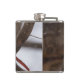 The flask itself is fine. It’s a cheap flask, obviously bought in bulk, however am prepared to overlook that. Given that it is a personalized item, I would have liked to have seen gift boxing instead of the generic packaging. Terrible printing, and/or quality. It’s a cheap, tacky vinyl. It is not cut straight and is also applied in a way that it is overhanging the bottom, causing the glue to catch on items and it will eventually roll and tear, damaging the wrap.