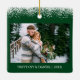 Snow Top Our First Christmas Engaged Photo Green Ceramic Ornament