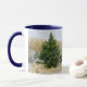My original digital artwork featuring my original photograph of green cedar trees in a field is on this pretty mug cup. The image was processed with an illustrated style and whimsical snowing appearance. The front of the mug states "Let It Snow!". The inside of the cup and handle are a dark blue tone to complement the artwork. These are 11-ounce mugs, just the perfect size for your home brewed coffee or tea - or even hot chocolate! It would make a great gift and you can put packets of coffee, tea bags or hot chocolate inside. One other gift idea is putting a little plant in it to make it extra special for your loved one. It would also make a nice Christmas Holiday Day gift.