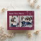 A modern and festive design for your holiday greetings featuring two photos aligned side by side, on an on-trend deep winter plum background adorned with snowflake garlands along the right side. "Snow Very Merry" appears across the top in retro lettering, with your family name and the year along the bottom. A modern and eyecatching holiday card design for Christmas 2021.