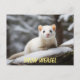 Snow Weasel laying on rock Postcard