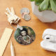 I love the little animals on the key chain and the girl holding the little squirrel. It's very sweet. Beautiful photo. No printing on the key chain. I also have no way of loading a photo.