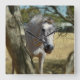 Featured is a pretty white horse nick named snow white, peeking through a tree.