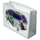These two personalised and stylish glossy gift bags were simply ideal to carry wedding gifts wrapped in the matching gift wrapping paper. The customised text printed on the gift bags was precisely as ordered and while the photo does not quite do the gift bags justice, rest assured they look fabulous. The gift bags were securely packaged for safe transit arriving undamaged and it was a speedy turnaround from ordering to delivery. Thank you Zazzle for another 5-star transaction in every way!
