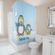 A little penguin cartoon with snowball and a fainted one. Custom text.