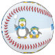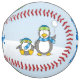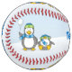 A little penguin cartoon with snowball and a fainted one. Custom text on both sides.