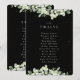 An elegant black christmas/holiday party table number/seating chart card featuring hand painted snowberries and eucalyptus. All text is fully editable and there is space to accomodate twelve names. Once your names are input, the font size and the vertical space between lines can be altered in edit view for a better fit. Alternative designs, colours and coordinating items are available in my store.
