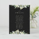 An elegant black winter wedding table number/seating chart card featuring hand painted snowberries and eucalyptus. All text is fully editable and there is space to accomodate twelve names. Once your names are input, the font size and the vertical space between lines can be altered in edit view for a better fit. Alternative designs, colours and coordinating items are available in my store.