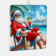 Personalised Christmas ornament. An ai watercolor illustration of Santa sitting on the beach drinking a cocktail. Cute Christmas ornament keepsake for people who are considered snowbirds that travel to Florida or other tropical areas to enjoy the warm weather during the holidays.