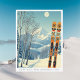 Hello from the snowy mountains of Snowbird, Utah, USA! We hope you're having a wonderful ski vacation. This postcard features a gorgeous blue-grey mountain landscape with retro ski boards in an orange tribal pattern.