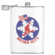 The flask itself is fine. It’s a cheap flask, obviously bought in bulk, however am prepared to overlook that. Given that it is a personalized item, I would have liked to have seen gift boxing instead of the generic packaging. Terrible printing, and/or quality. It’s a cheap, tacky vinyl. It is not cut straight and is also applied in a way that it is overhanging the bottom, causing the glue to catch on items and it will eventually roll and tear, damaging the wrap.