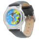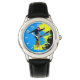 The leather band makes it seem like an “older kids” watch. Easy to read the time. Clear printing and image.
