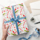 Creative snowboarding Christmas holiday gift wrap featuring cartoon Santa snowboarder and candy canges. To personalise edit text to add name.
