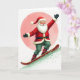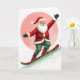 The card features bold, dynamic colors and a playful depiction of Santa 🎅🏼, snowboarding in a joyful and energetic manner. The striking contrast of red and green hues, along with the soft, rosy glow, creates a warm and inviting atmosphere. Santa's cheerful expression and twinkling eyes exude holiday cheer, while the expertly balanced composition conveys a sense of motion and exhilaration. The festive text, written in a whimsical font, adds to the card's charm ⛄️. Perfect for spreading holiday cheer, this Christmas greeting card is sure to bring smiles to all who receive it 🎄🎁.