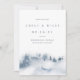 Elegant winter wedding save the date cards feature classic blue-grey lettering on a watercolor background of snow-covered hills dotted with pine trees in soft blues and greys. A chic choice for winter weddings in forest or mountain settings, these elegant flat save the date cards are easy to customise with your names, wedding date, wedding location, and website or an indication that a formal invitation will follow.
