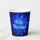 A swarm of blue fractal snowflakes. Spanish text reading "Feliz Navidad" appears in glowing blue and white. Add your own additional text on the reverse side.