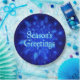 A wintry theme featuring a swarm of blue fractal snowflakes. Text reading "Season's Greetings" appears in glowing blue and white.