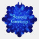 A wintry theme featuring a swarm of blue fractal snowflakes. Text reading "Season's Greetings" appears in glowing blue and white. Add your own additional text on the reverse side.