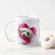 Pretty white mug with a cute but dramatic heart picture of Snowdrop the Maltese.
