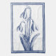 Snowdrops in deep blue and white, designed to look like a lino print.