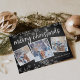 Modern and festive holiday photo card features three square photos in a collage layout on a black chalkboard background, with a top and bottom border of falling snowflakes and "Merry Christmas" across the top in hand sketched typography. Personalise with your names and the year at the lower right.