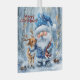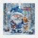 In a snowy forest filled with pinecones and falling flakes, a cheerful gnome in a blue winter outfit shares a tender moment with a small reindeer. The gnome holds a red and white patterned scarf, echoing the festive spirit that dances through the scene. Their affectionate gaze and the soft snowfall create a sense of peace, connection, and holiday magic.