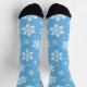 The Snowfall Serenade Socks bring the gentle rhythm of falling snow to your everyday style. Crisp white snowflakes drift across a soft sky-blue backdrop, creating a design that feels like a quiet instrumental playing under twinkling lights. Light, playful, and full of seasonal charm, these socks capture the hush of fresh snow and the sparkle of holiday magic.
