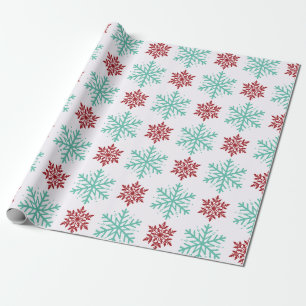 Teal-Green & White Abstract Christmas Snowflake Wrapping Paper